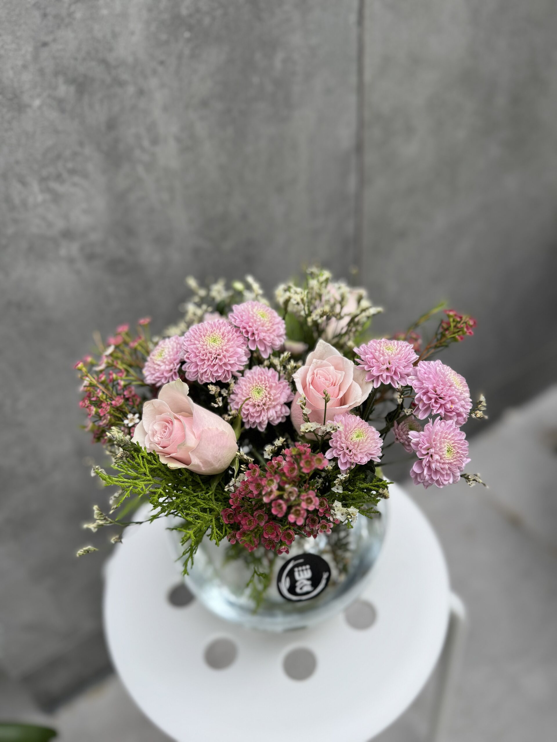 Bu çiçekler, nazik ve parlak renkleriyle, farklı ve özel bir hediye arayanlar için mükemmel bir seçimdir. Pembe krizantem ve pembe gül, hem görsel hem de duygusal açıdan anlamlı bir hediye sunar.